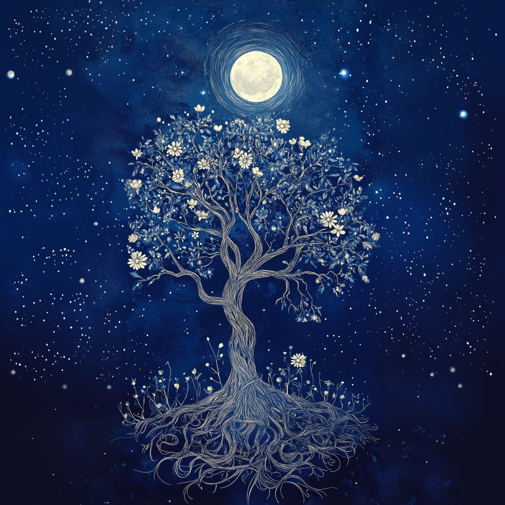 Home / Other / Floral Cosmic Tree with Roots Stars Moon Sky Aesthetic Floral Cosmic Tree with Roots Stars Moon Sky Aesthetic A blooming tree beneath a moonlit sky radiates celestial calm, mystical symbolism, and peaceful energy. Buy this design on Amazon: iPhone Cases | Throw Pillows | Tote Bag | Phone Grip FacebookTweetPin Other designs you might like...