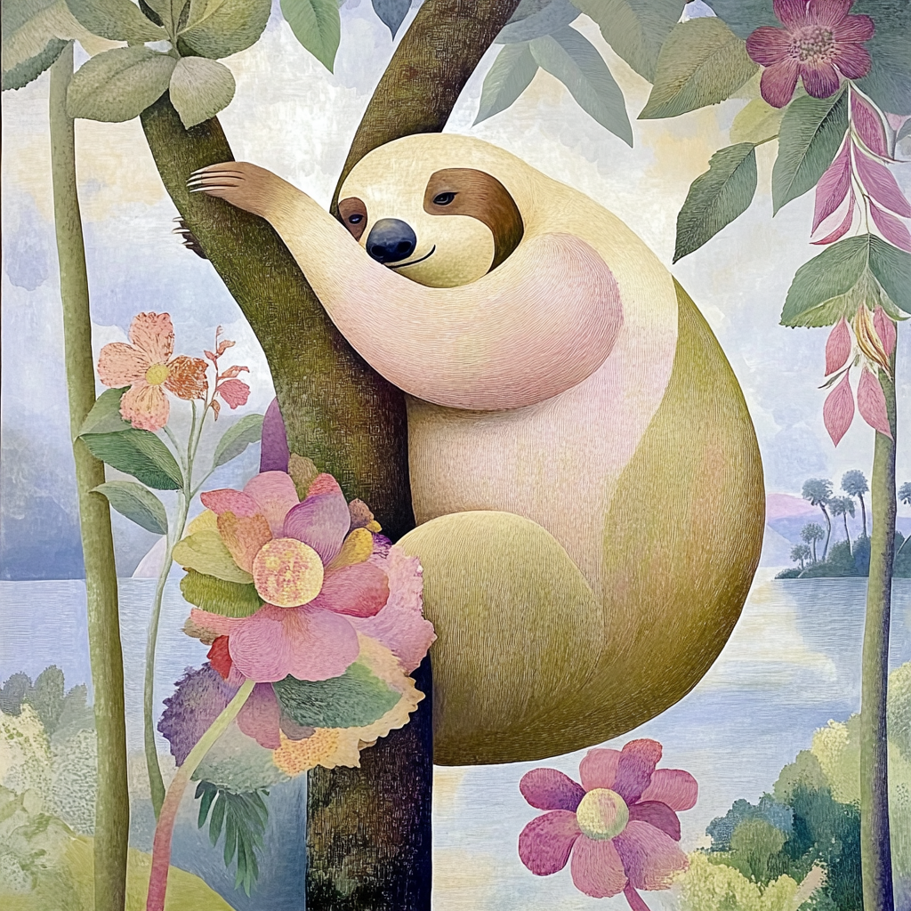 Home / Other / Whimsical Sloth in Floral Jungle with Soft Nature Aesthetic Whimsical Sloth in Floral Jungle with Soft Nature Aesthetic Embrace serenity with this pastel artwork of a sloth nestled in a floral jungle, radiating peace. Buy this design on Amazon: iPhone Cases | Throw Pillows | Tote Bag | Phone Grip FacebookTweetPin Other designs you might like...